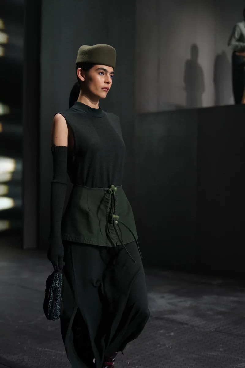Backstage, that intention became almost tangible. Between fittings, textures and quiet gestures, there was a sense of focus and calm that contrasted with the usual pace of a runway environment.
